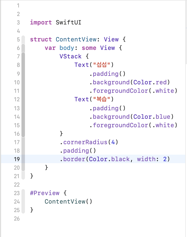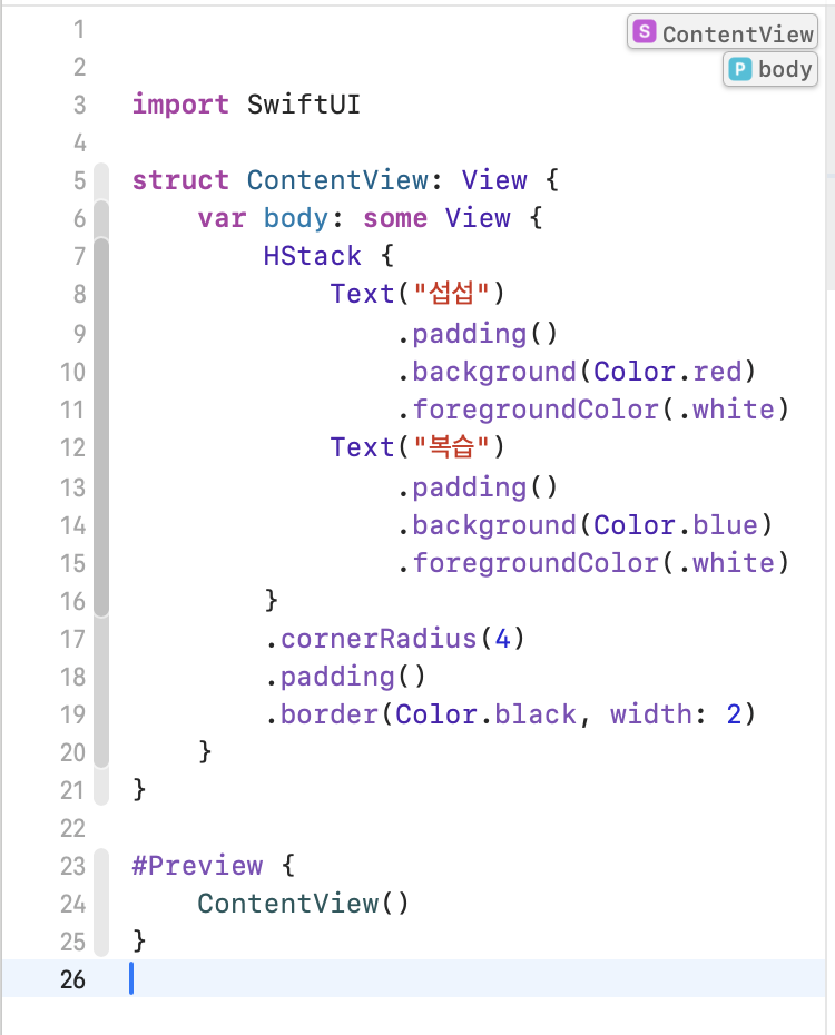 .cornerRadius(4) HStack의 모서리를 둥글게 만듭니다. 4포인트로 둥글게 처리하였습니다.